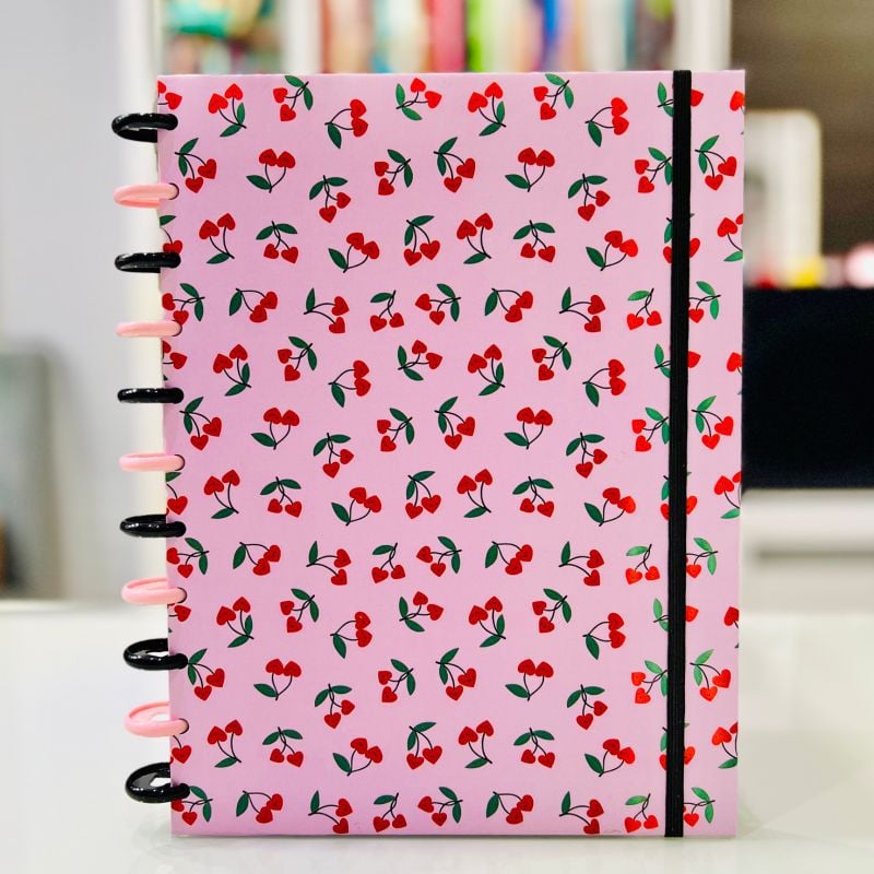 Capa dura decorada no exterior e na parte interna com elástico para fechar e levá-lo por aí!